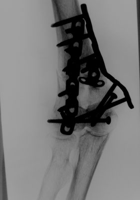 Bei ausgedehnter Zertrümmerung des Radiusköpfchens kann dieses mit Miniplättchen rekonstruiert werden oder sogar vollständig entfernt werden, ohne das die Funktion des Ellenbogens stark beeinträchtigt wird.