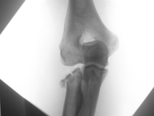 In Kombination mit dem auf dem Röntgenbild sichtbaren Knochenbruch liegen häufig zusätzliche Bandverletzungen des Gelenkes vor.